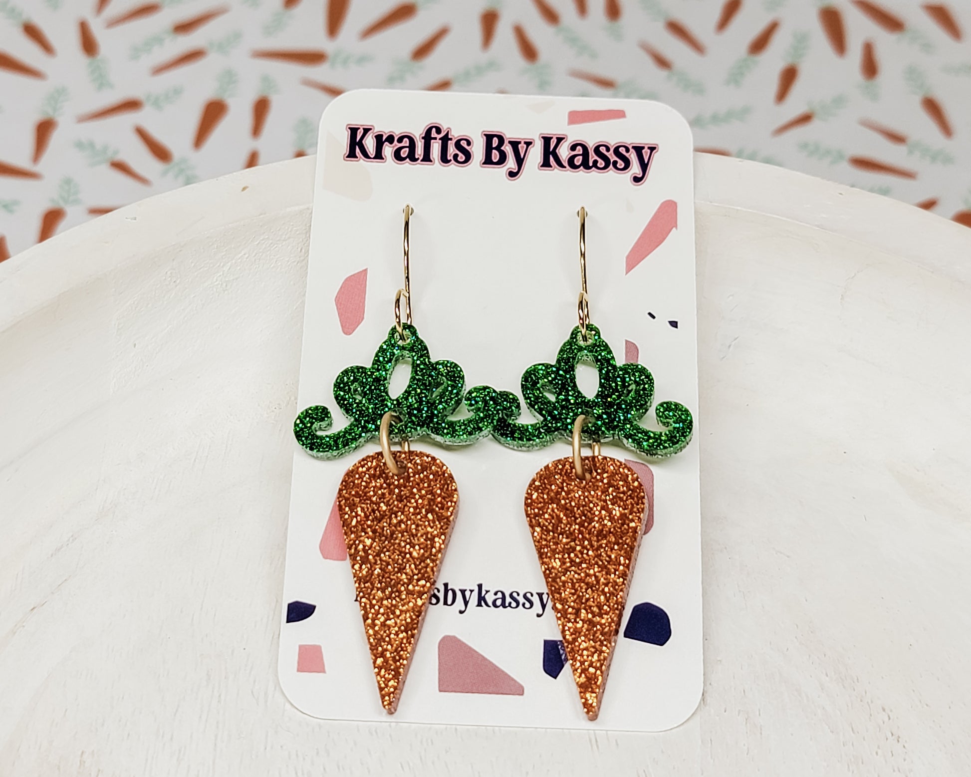 Add a touch of fun to your spring wardrobe with our glitter carrot acrylic earrings! These playful earrings feature a glittery carrot design that will bring a pop of color and joy to any outfit. Made from lightweight acrylic, these earrings are comfortable to wear all day long. Whether you're dressing up for a special occasion or just adding some sparkle to your everyday look, these earrings are sure to bring a smile to your face.