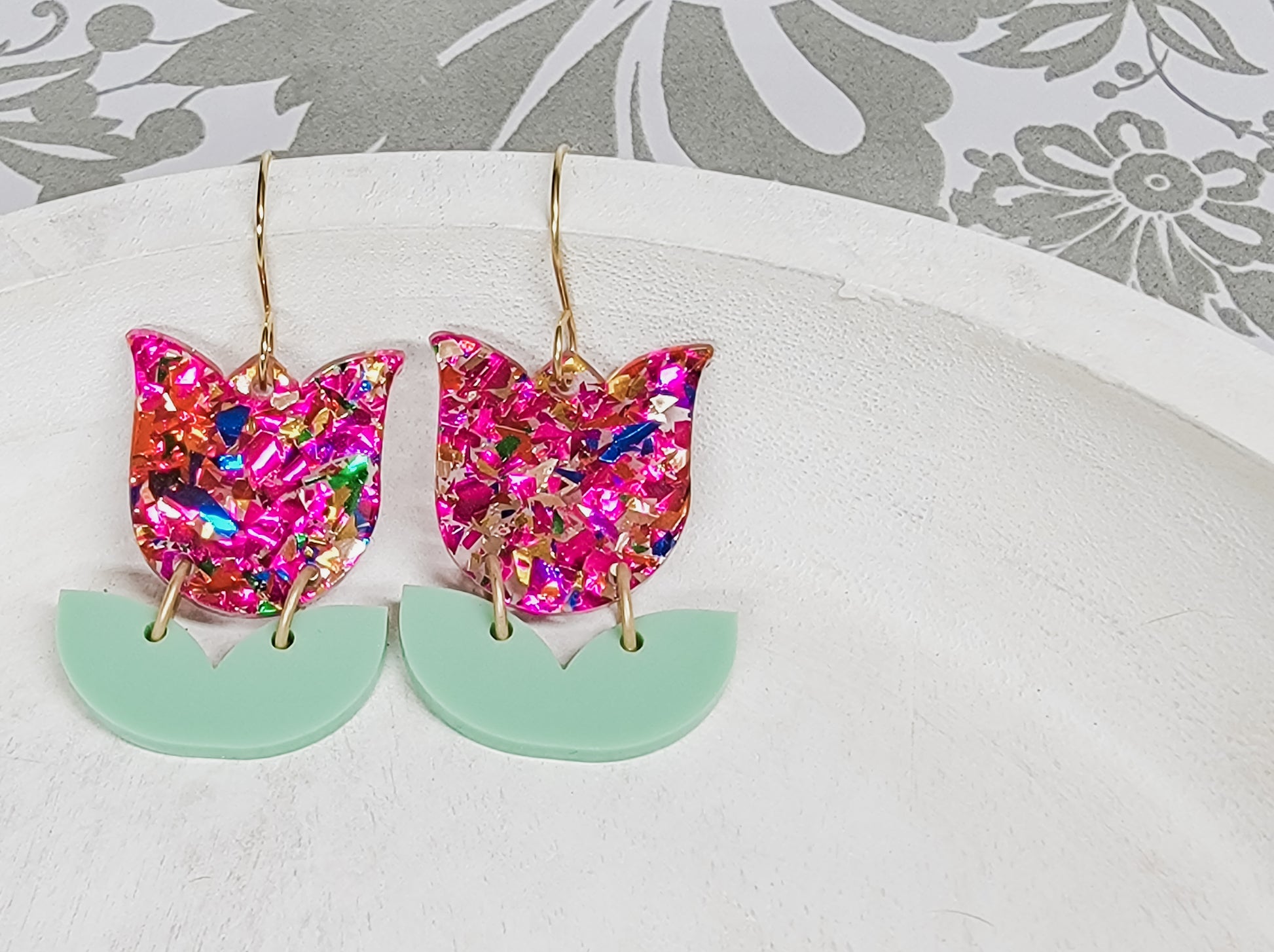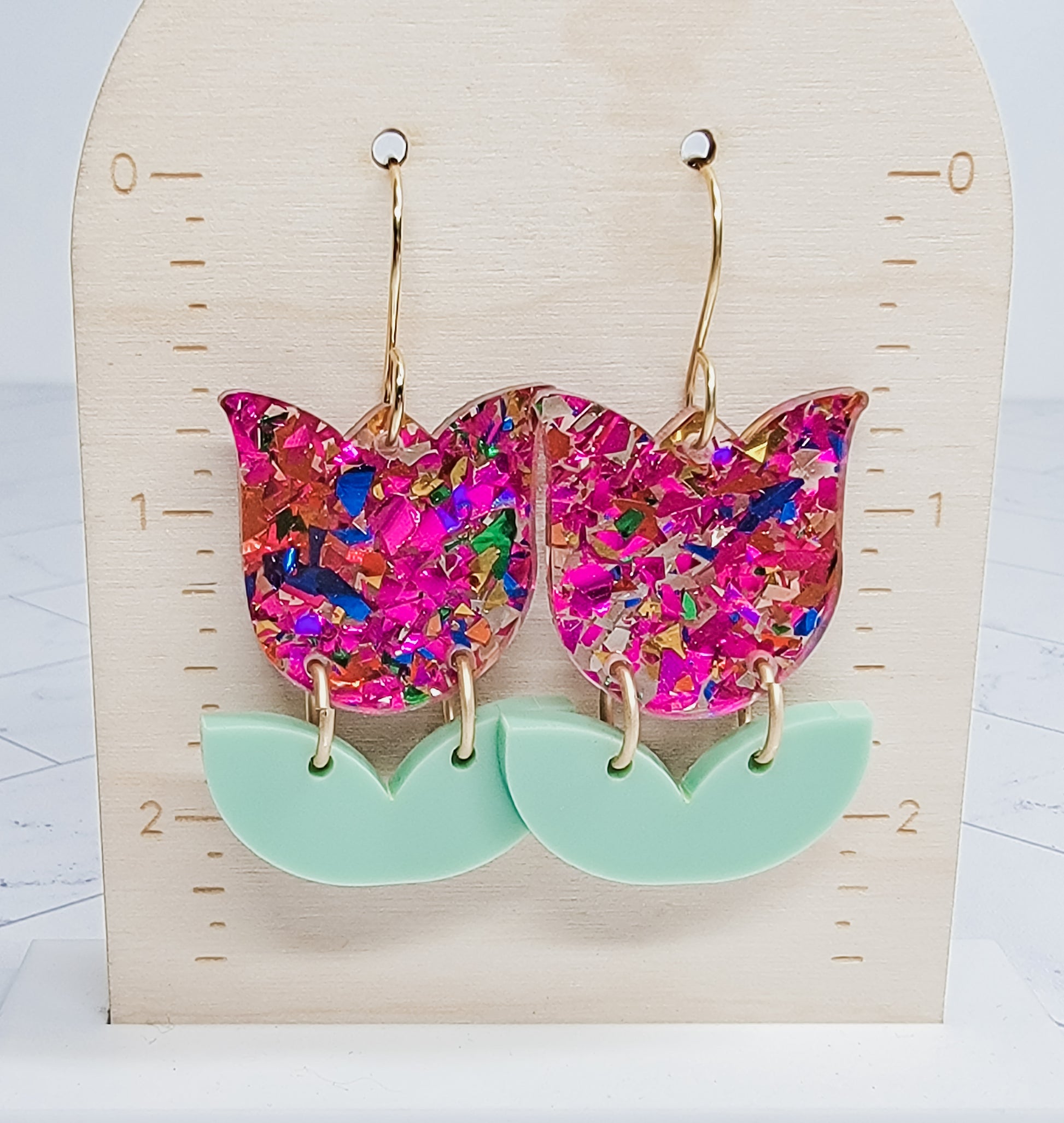 Whether you're dressing up for a special occasion or simply want to add a pop of color to your everyday look, these tulip acrylic earrings are the perfect choice. Their unique and playful design will make you stand out from the crowd and add a touch of personality and fun to any outfit. Crafted from high-quality acrylic, these earrings are lightweight and comfortable for all-day wear.