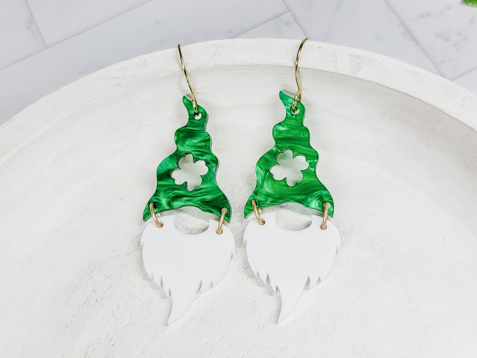 These gorgeous pearl gnome hat dangle earrings will have you ready for Saint Patrick's day in no time! They're lightweight and great for all day wear! The design is cute for all year wear!