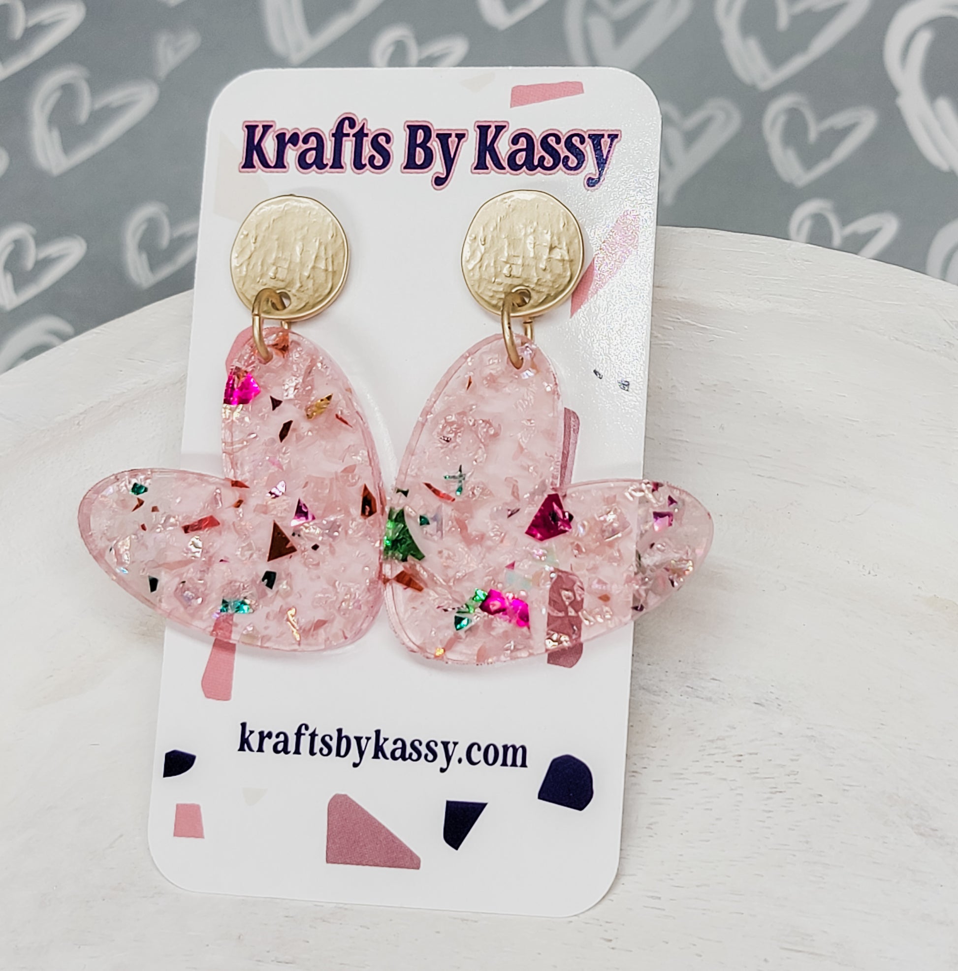 Heart earrings are approximately 2" long and assembled with hypoallergenic matte gold studs which are perfect for sensitive ears!